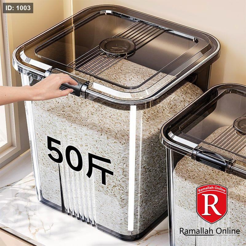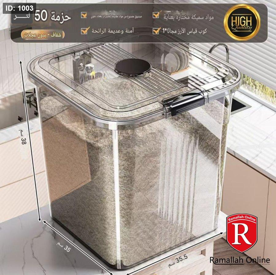 🔹 50 لتر: أرز ≈ 40 كجم / طحين ≈ 30 كجم