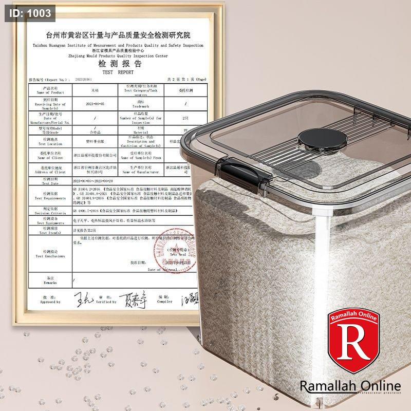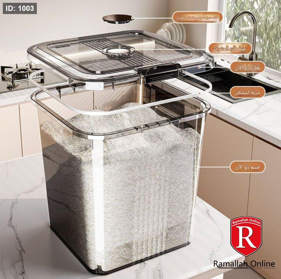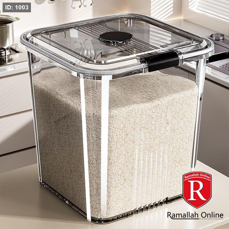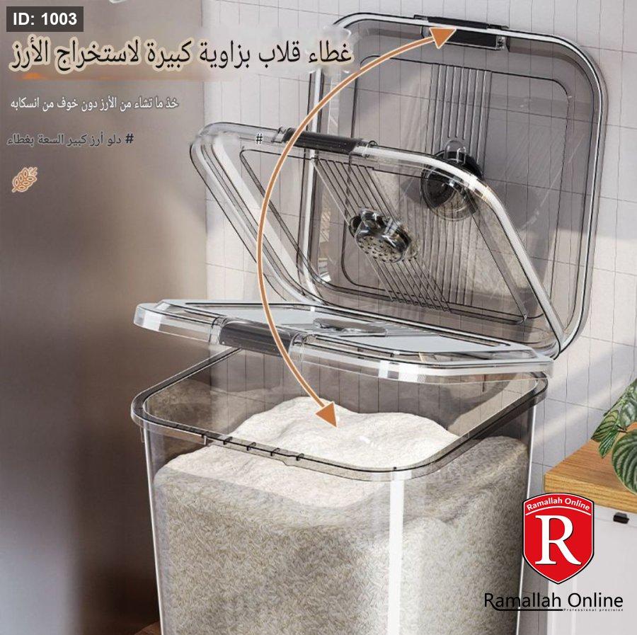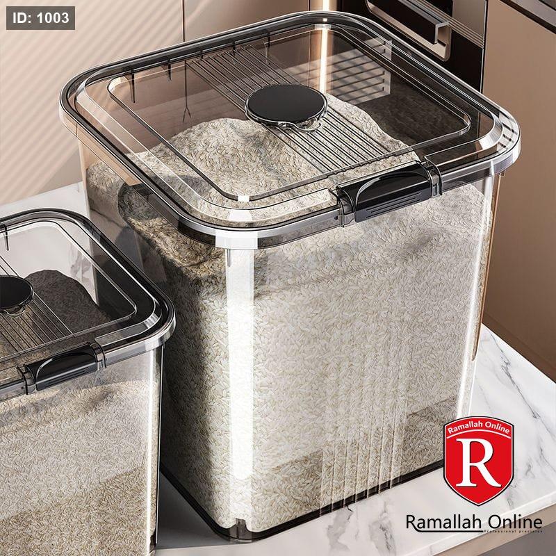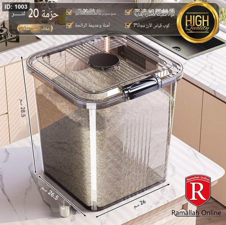 🔹 20 لتر: أرز ≈ 16 كجم / طحين ≈ 12 كجم