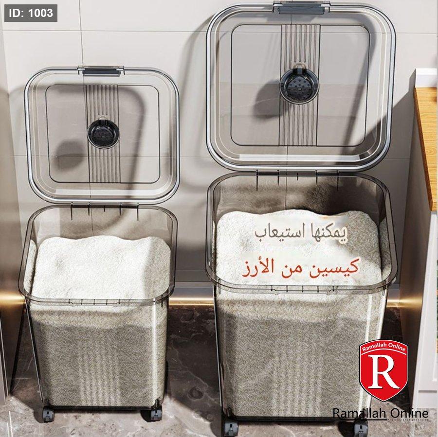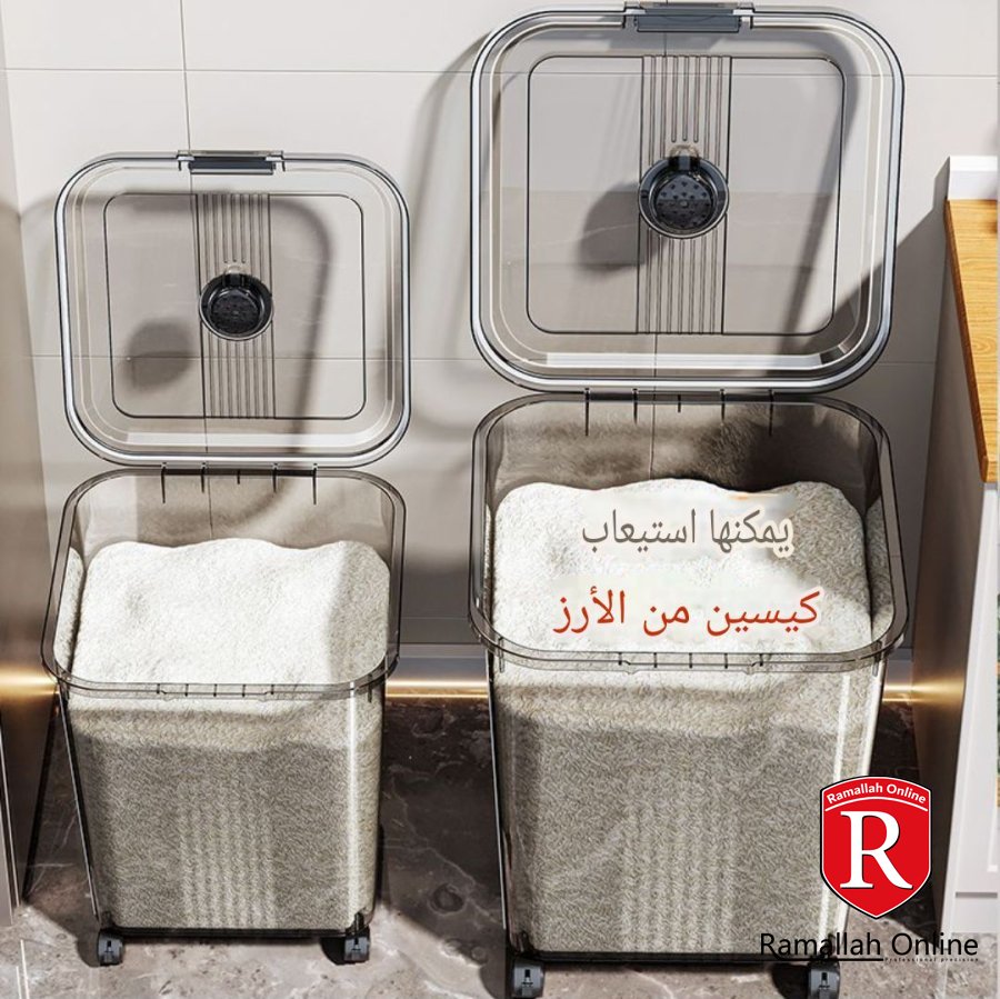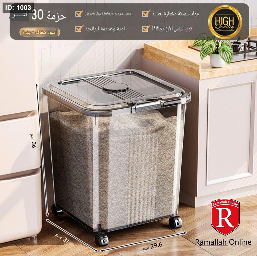 🔹 30 لتر: أرز ≈ 24 كجم / طحين ≈ 18 كجم
