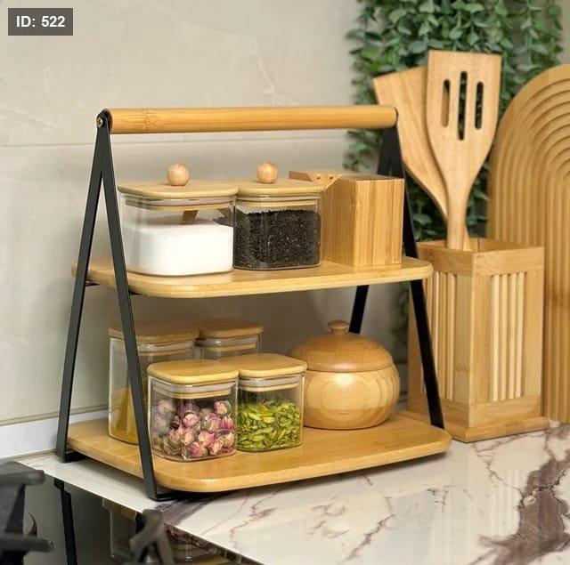 أضف لمسة دافئة وجذابة إلى مساحتك مع هذا الرف الديكوري العصري المصنوع من خشب البامبو الطبيعي والإطار المعدني الأنيق. تصميمه المزدوج يمنحك مساحة تخزين مثالية لترتيب مقتنياتك بأسلوب راقٍ ومميز، سواء في المطبخ، غرفة المعيشة، أو حتى على مكتبك.