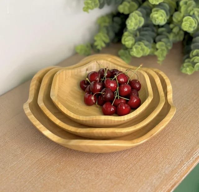 أضف لمسة **دفء وجمال طبيعي** إلى مائدتك مع **طقم الأطباق المصنوع من خشب البامبو الفاخر**. بتصميمه الفريد والحواف المموجة، يعد هذا الطقم خيارًا مثاليًا لتقديم **المكسرات، الفواكه المجففة، التمور، أو حتى المأكولات الخفيفة** بأسلوب أنيق ومميز.