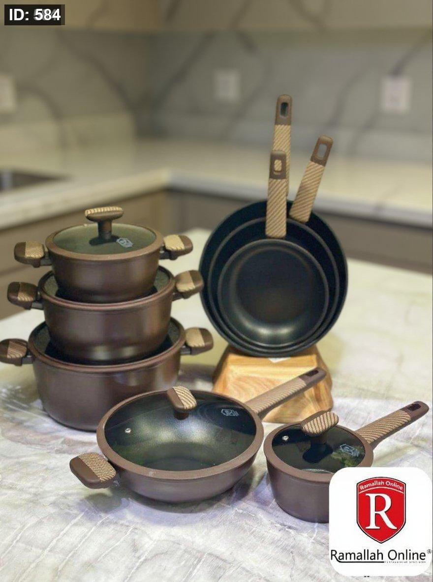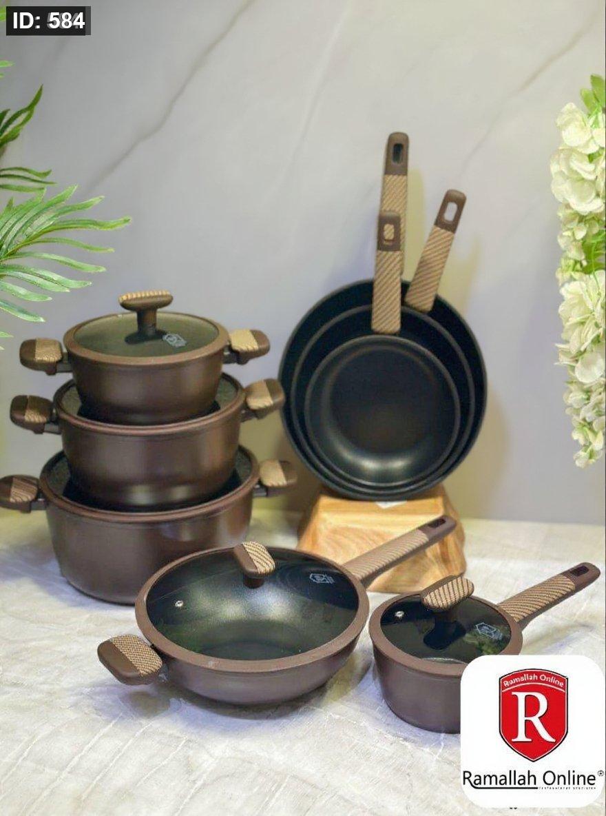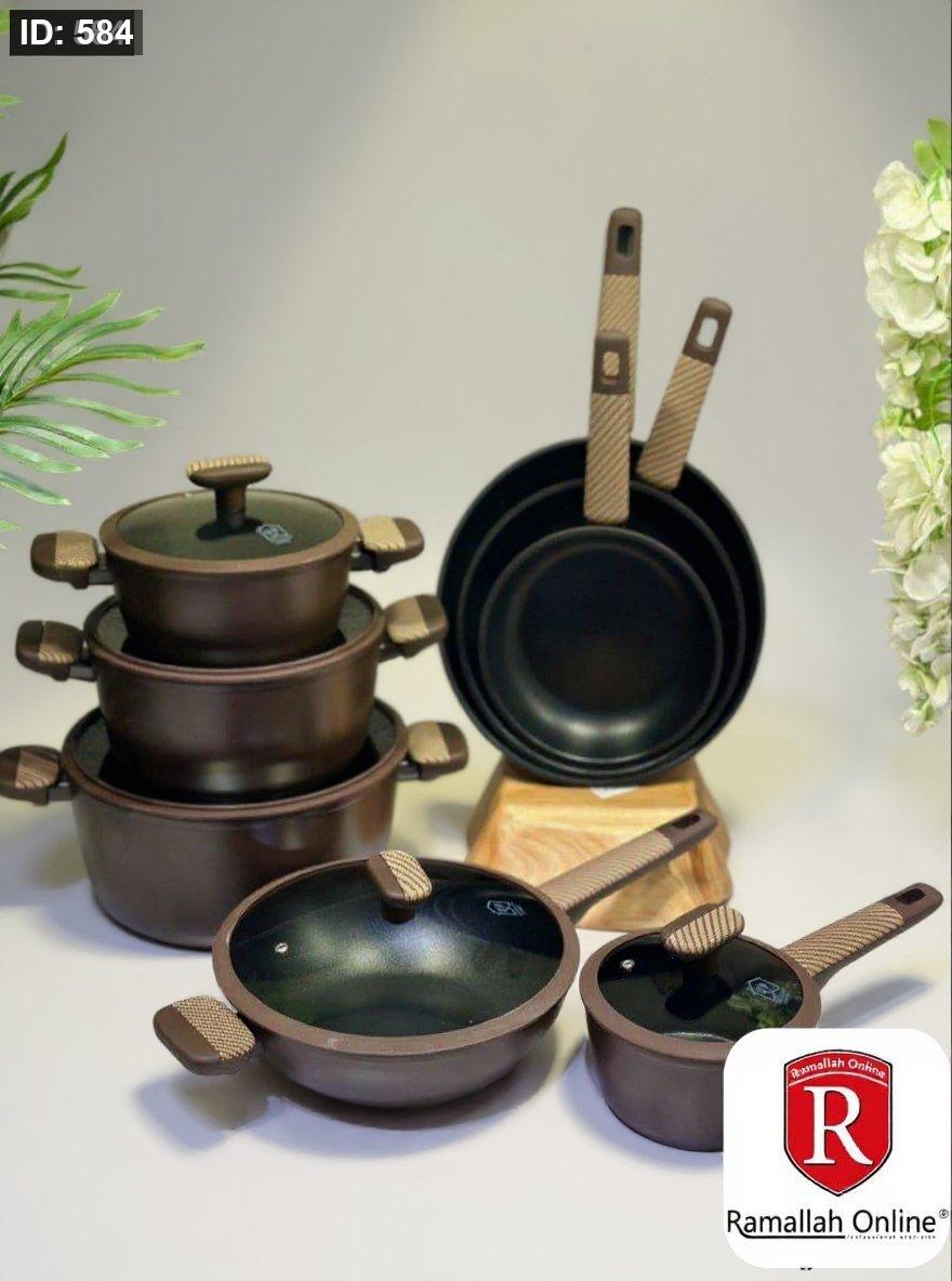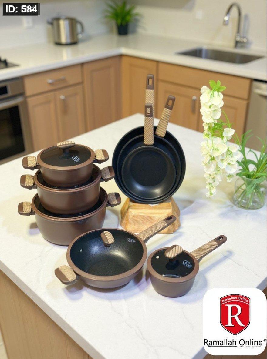 ارتقِ بتجربتك في المطبخ مع **طقم MASA PLUS** المصمم بعناية ليجمع بين الجودة العالية والتصميم العصري. مصنوع من مواد غير لاصقة فاخرة وسهلة التنظيف، بلمسة نهائية أنيقة باللون البني المطفي.
