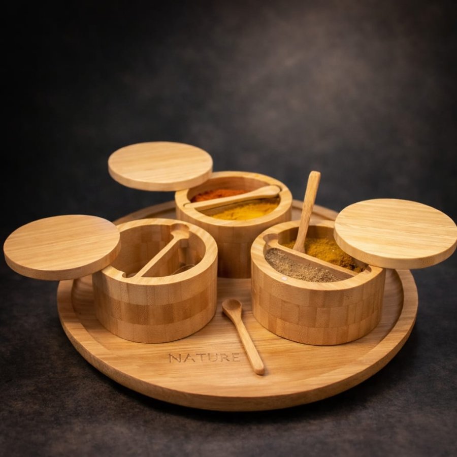 * 🪵 **مصنوعة من خشب البامبو الطبيعي** بتصميم أنيق يليق بأرقى المطابخ.