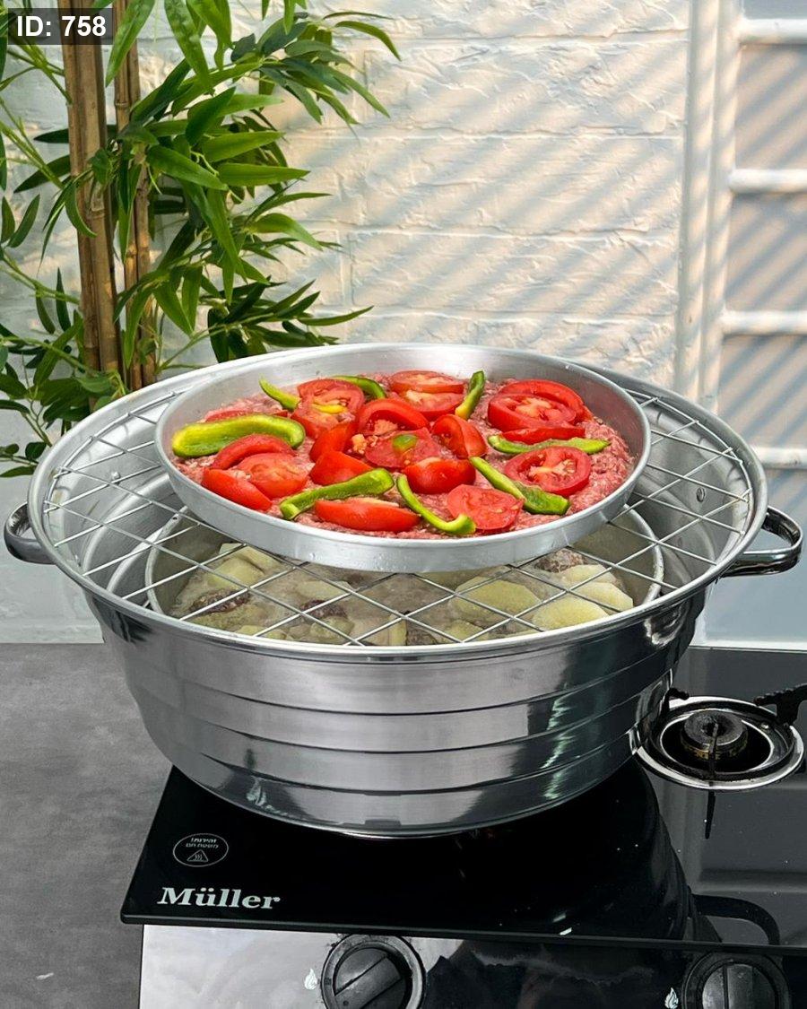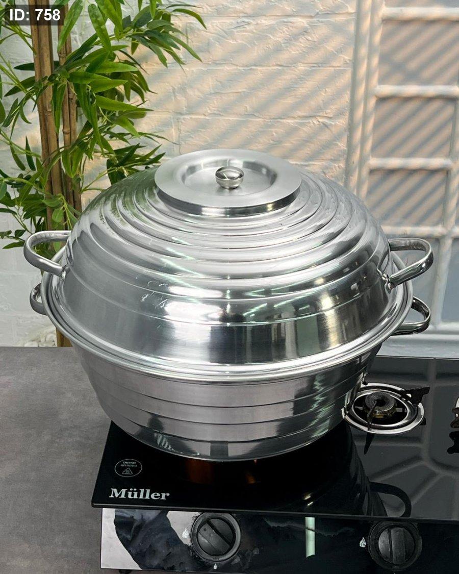 * 🔥 **تعمل على الغاز مباشرة** من خلال فتحة سفلية توزّع الحرارة بالتساوي داخل الحلة.