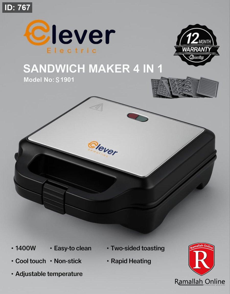🔸 جهاز Clever S1901 – صانعة ساندويتش 4 في 1**