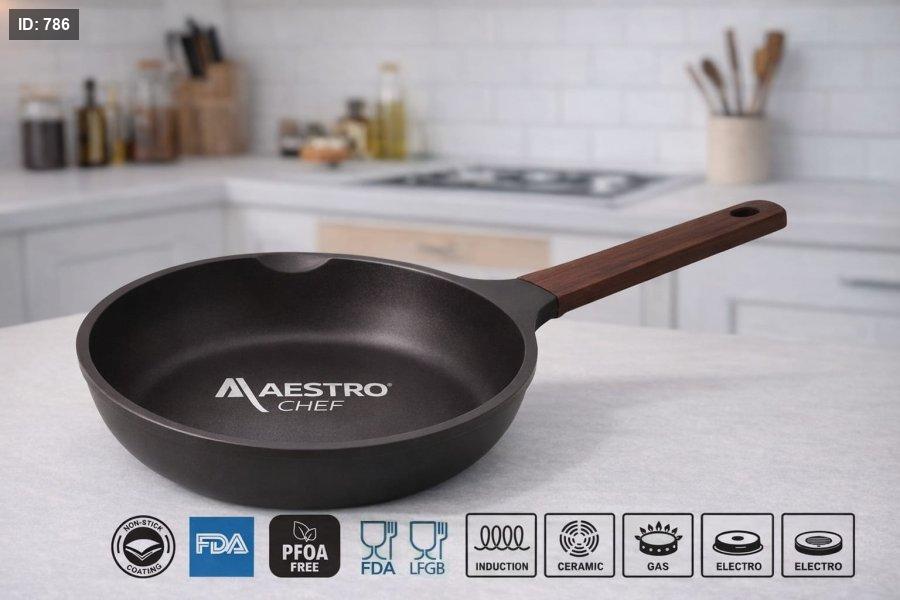 قلايات **MAESTRO Chef** يقدّم أداء ثابت، يعمل على كل المواقد، ويدخل الفرن عند الحاجة —