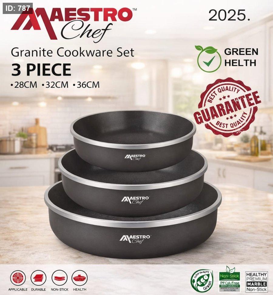 1️⃣ طقم جرانيت أصلي من ماركة **Maestro Chef**.