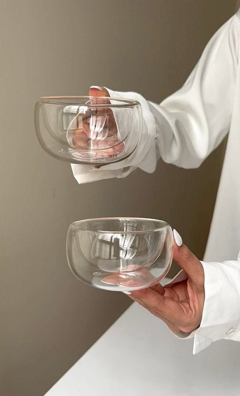 أكواب / صحون زجاجية مزدوجة الجدار للتقديم والحلويات (حجم كبير)