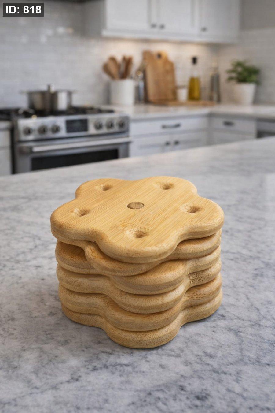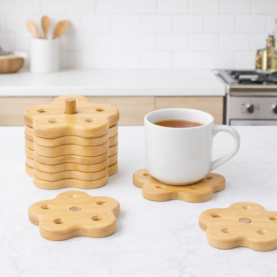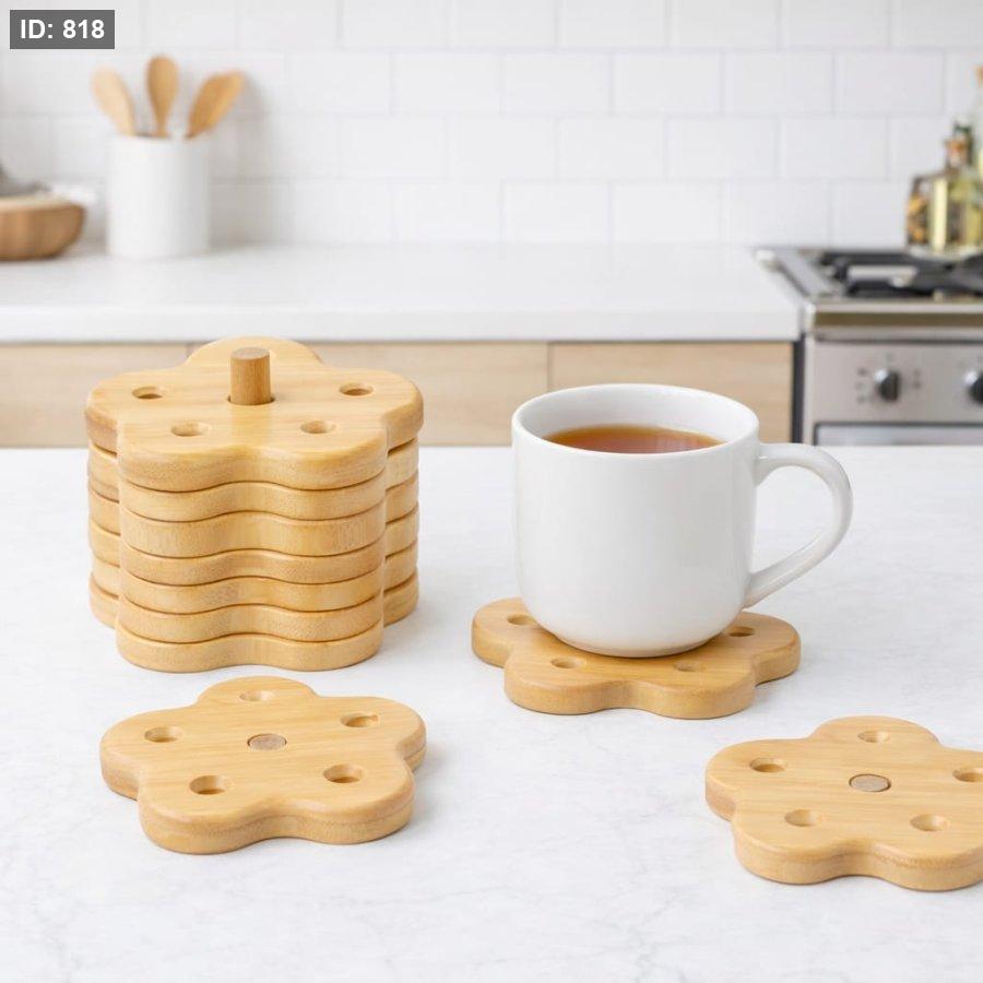 اسم المنتج: طقم كوسترات خشبية بتصميم زهرة أنيق