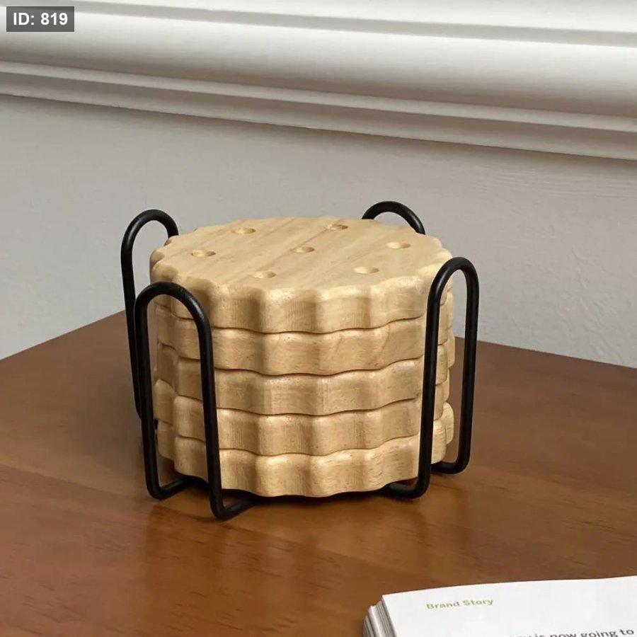 اسم المنتج: كوستر خشبي دائري مع حامل معدني