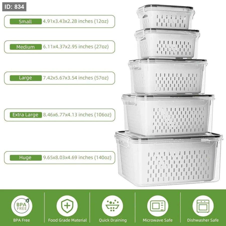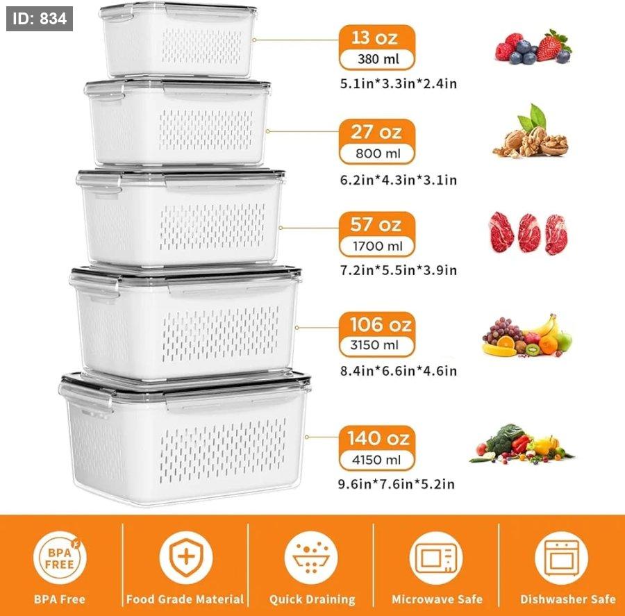 ## 🥦 **حاويات حفظ الخضار والفواكه متعددة الأحجام**