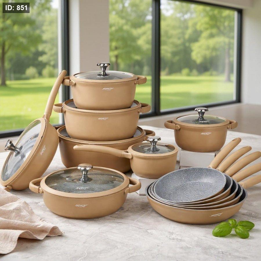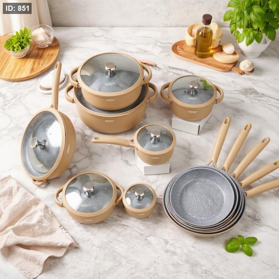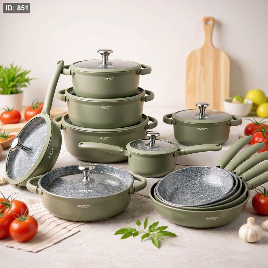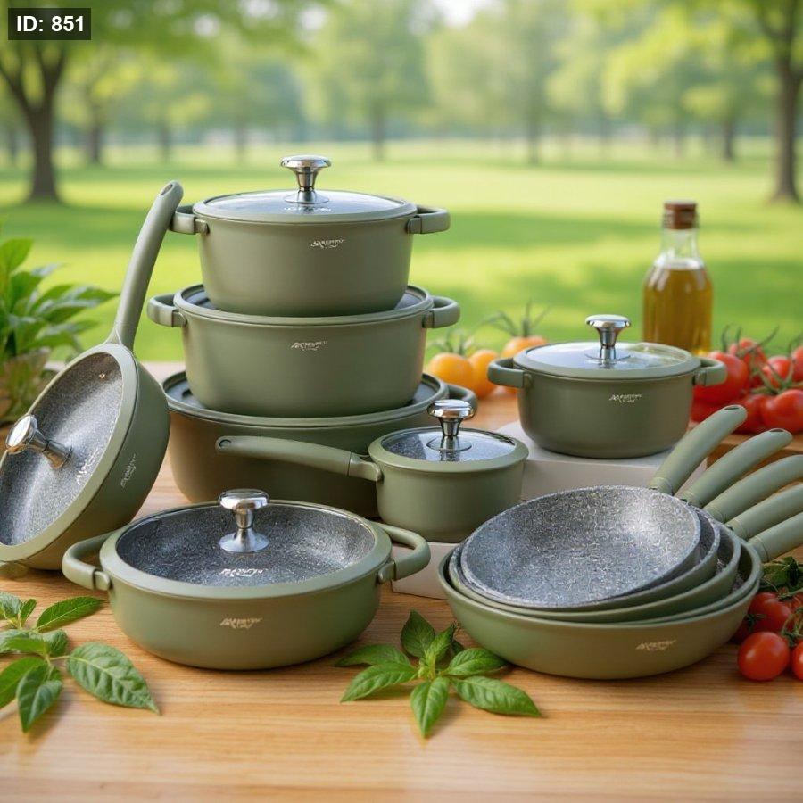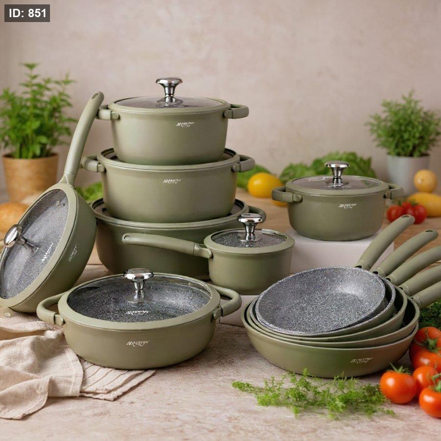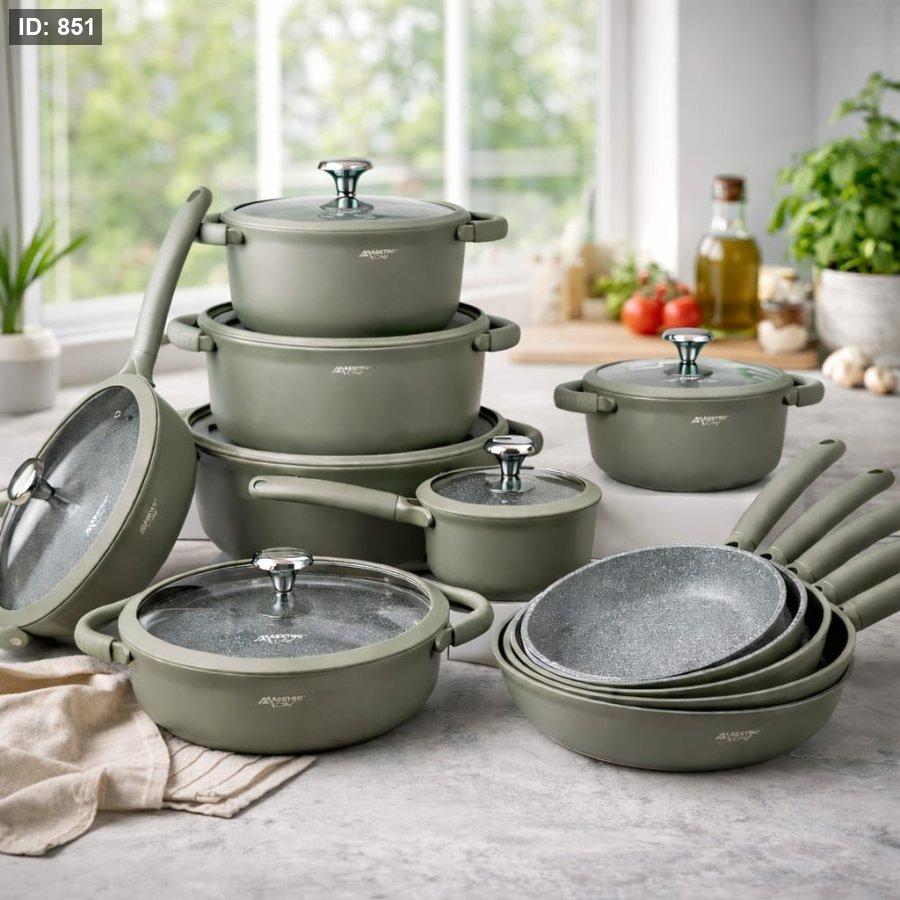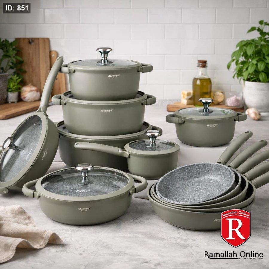طقم MaestroChef يجمع بين التصميم العصري والأداء العالي. مصنوع من الألمنيوم السميك المصبوب (سكب) لتوزيع متوازن للحرارة ومتانة تدوم لسنوات.