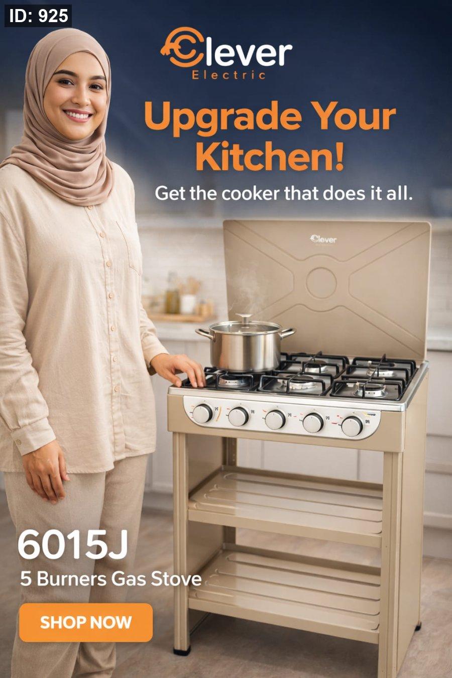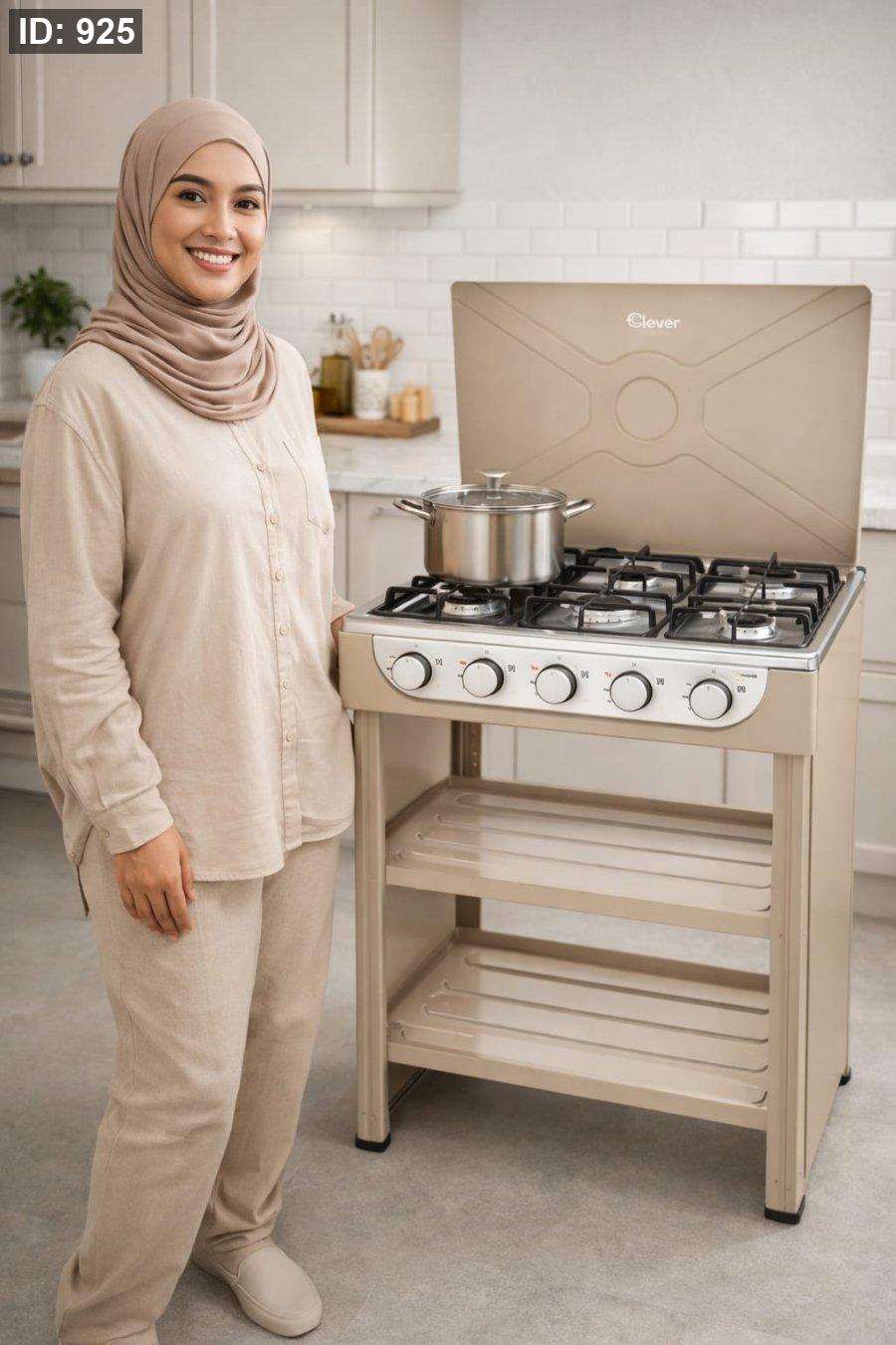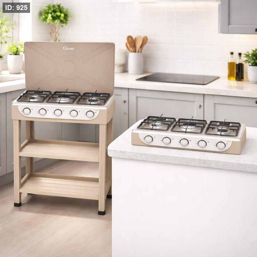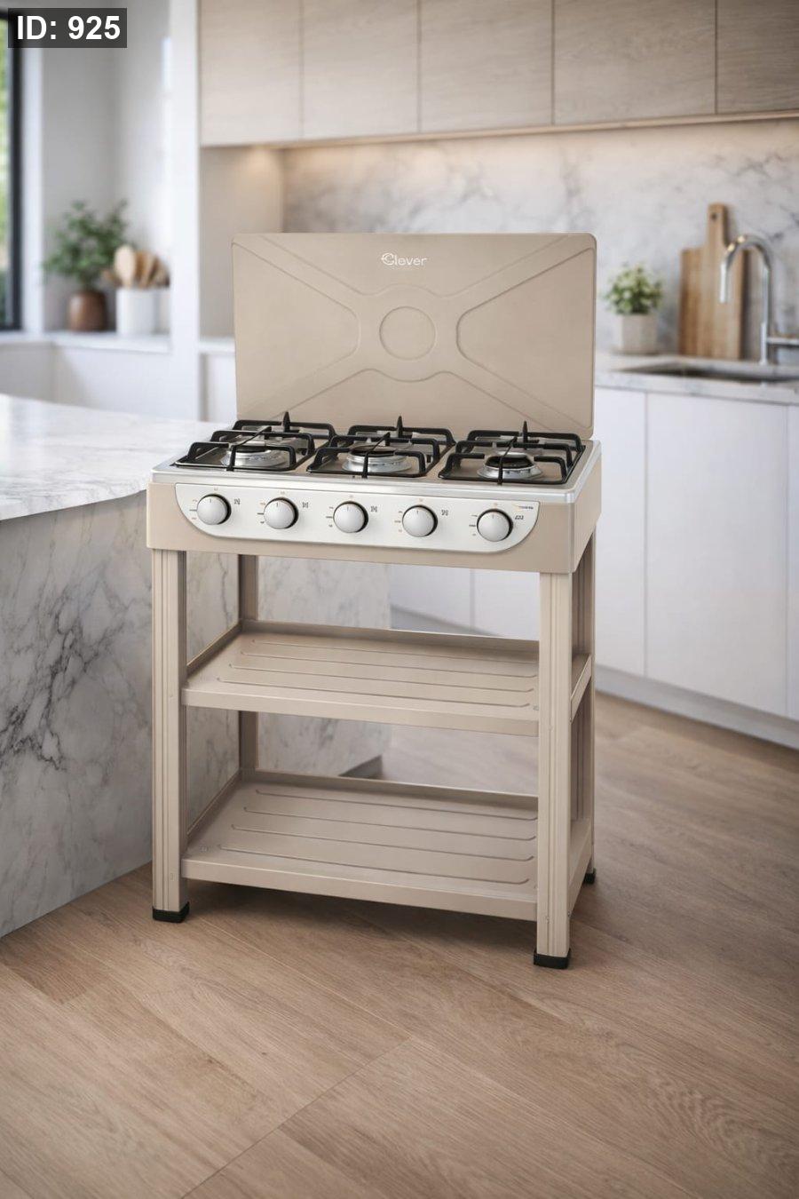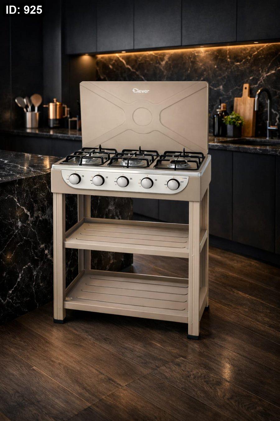 1️⃣ موقد غاز منزلي أنيق بخمسة شعلات، مثالي للمطابخ العائلية والطهي اليومي.