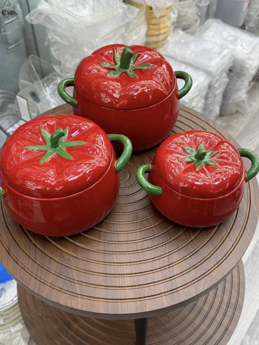 1️⃣ تصميم على شكل طماطم يضيف جمالية مميزة للمائدة.
